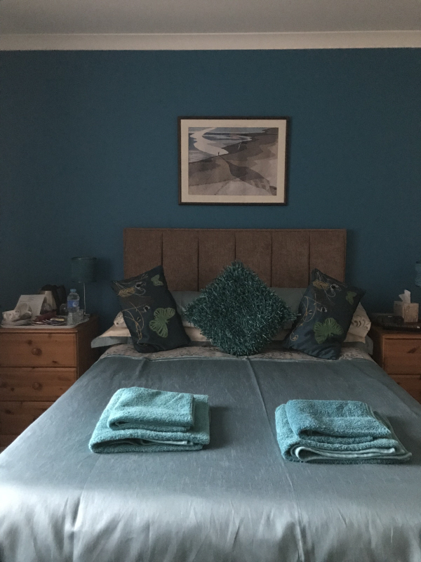 Comfortable three-bed room with lovely views and nice bathroom across the passageway. The sitting room was a fine place to relax with books and games and the breakfast was excellent, including such exoticisms as white pudding... The owners were very helpful with particular requests to do with cold storage, clothes drying
